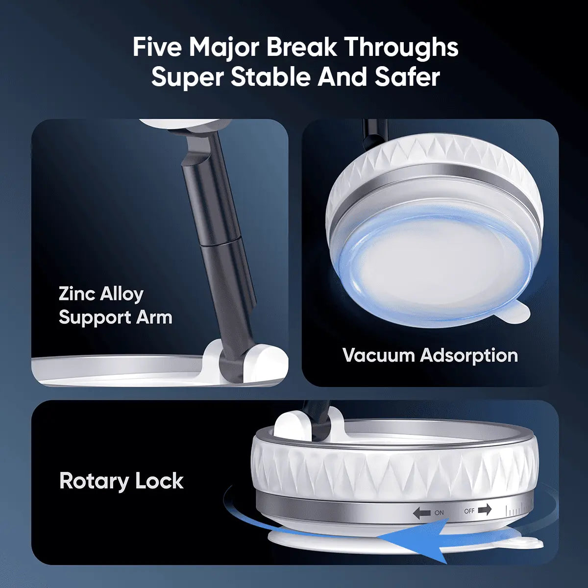 3.Vacuum suction for secure placement in multiple positions